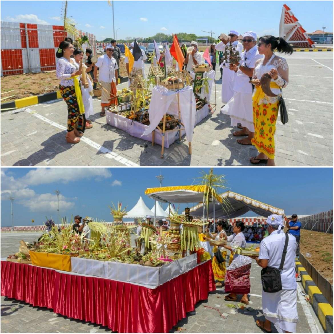 MANGUPURA - Setelah rampungnya proses pembangunan fasilitas dan bangunan yang dipersiapkan di Bandar Udara I Gusti Ngurah Rai untuk mempersiapkan penyambutan kegiatan internasional Annual Meeting IMF-WBG 2018 dan setelah dilakukan verifikasi dan evaluasi final pengembangan beberapa fasilitas tersebut termasuk pembangunan apron sisi barat dan apron sisi timur, rangkaian kegiatan dilanjutkan dengan adanya upacara adat melaspas pada Jumat (28/9).