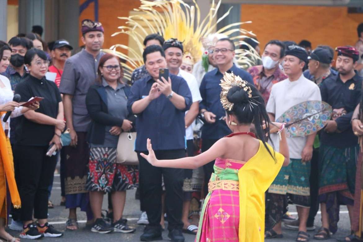 Kegiatan hiburan seni khas Pulau Dewata yang disambut antusias oleh para pengguna jasa tersebut turut di hadiri Menteri BUMN, Erik Thohir dengan didampingi Faik Fahmi, Direktur Utama PT Angkasa Pura I bersama Handy Heryudhitiawan, General Manager Kantor Cabang PT Angkasa Pura I Bandara Internasional I Gusti Ngurah Rai - Bali.