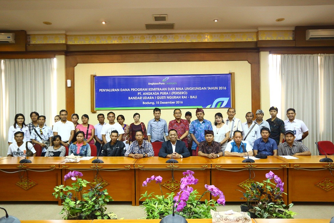 Mangupura - Sebagai bentuk kepedulian Angkasa Pura I dengan warga sekitar, pada penghujung tahun ini, Bandar Udara I Gusti Ngurah Rai kembali menyalurkan bantuan dana Program Kemitraan dan Bina Lingkungan (PKBL), Kamis (15/12). Penyaluran diserahkan secara simbolis oleh Sales Department Head Bandar Udara I Gusti Ngurah Rai Djon Herry di Kantor Angkasa Pura I Bandar Udara I Gusti ngurah Rai.
